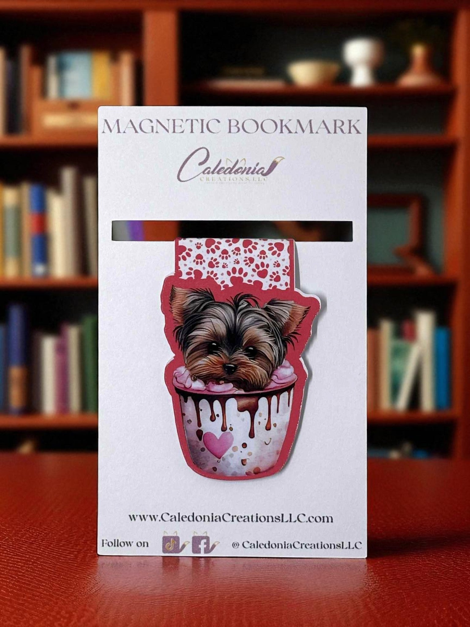 Brighten your reading breaks with the "Cup o' Cuteness" Magnetic Bookmark, featuring an adorable Yorkie snug in a cup. This playful bookmark keeps your page secure while adding a cozy, charming touch to your books. Perfect for those who love a little pup and a lot of fun with their reading!